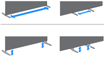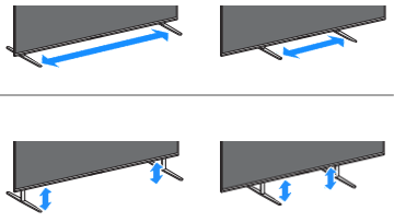 - A80L Series (55, 65 inches): You can change the height and position of the Table-Top Stand. The position of the Table-Top Stand can be changed to the outside or slightly inside the position of the TV.