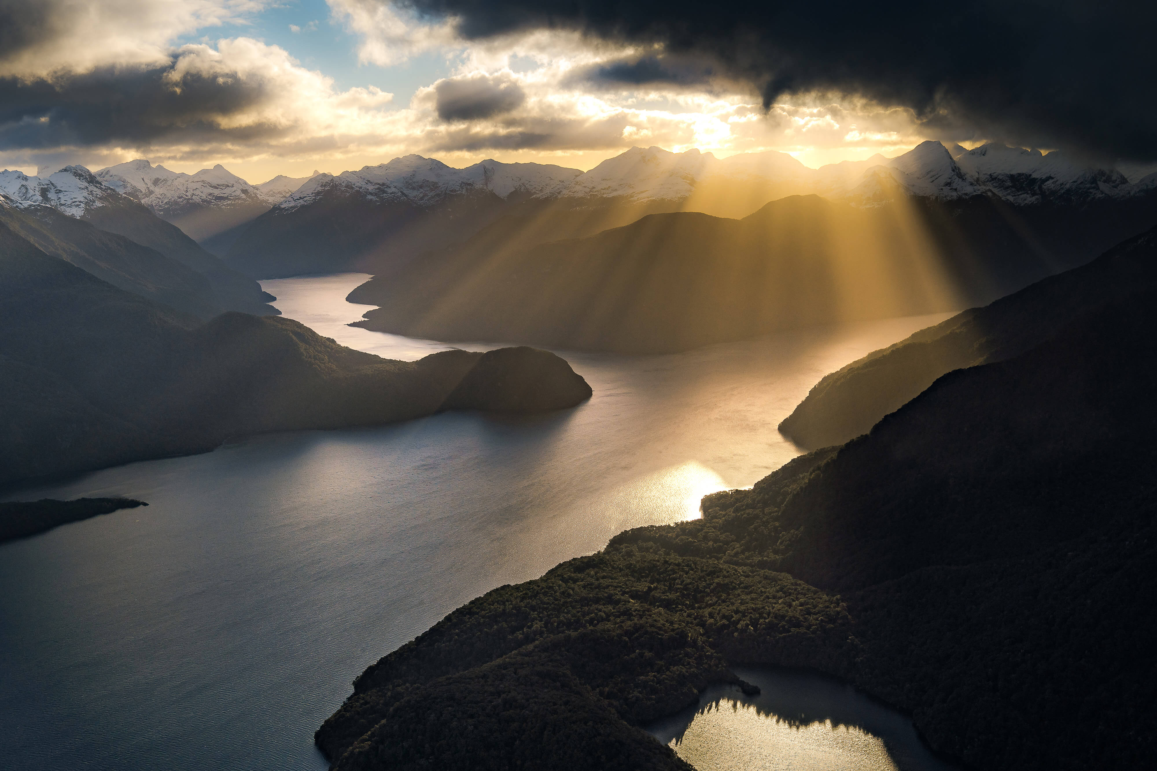 En route to the runway an unexpected moment of light breaks through as the sun begins to set over the Northern stretch of Lake Te Anau. I was lucky to have my camera still at the ready and to capture this fleeting moment.